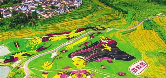 腾冲市清水乡三家村中寨司莫拉佤族村,稻田画以田为“纸”,以稻为“墨”,描绘出一幅美好图景。