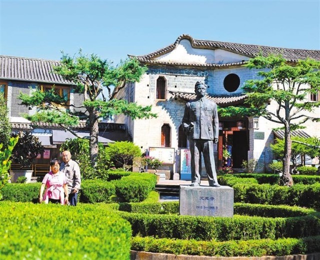 腾冲市和顺古镇艾思奇纪念馆,游人在此参观。