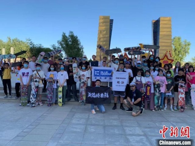 薛承祚(前排右一)和他的小伙伴们参与滑板比赛。(受访者供图)