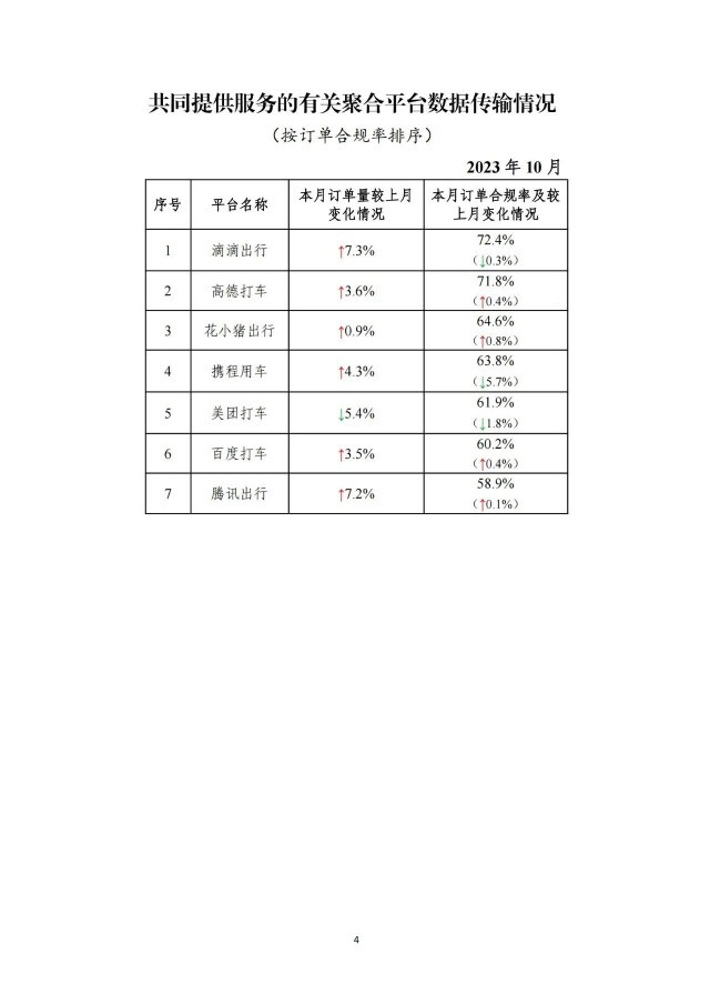 其中,面向乘客、与网约车平台公司共同提供服务的平台(俗称“聚合平台”)完成2.23亿单,环比上升3.6%。按订单合规率由高到低的分别是滴滴出行、高德打车、花小猪出行、携程用车、美团打车、百度打车、腾讯出行。