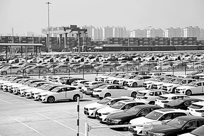 中国汽车进出口快速增长。图为陕西西安国际港站内存放汽车的物流基地。新华社发