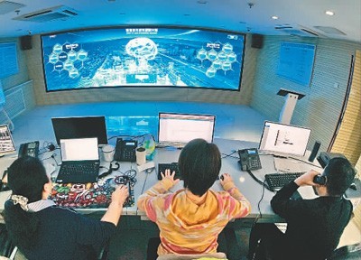 数字平台和数据平台为现代城市治理提供了重要抓手。北京市朝阳区双井街道打造基层数字经济与市域治理融合发展体系,建成79个智慧平安小区,大幅提升街道社区的管理服务效率。图为11月16日,工作人员在双井街道市民诉求处置中心的城市智慧大脑系统前工作。 新华社记者 李 欣摄