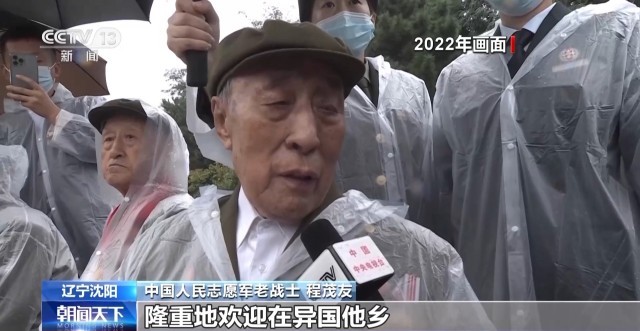 中国人民志愿军战士 程茂友:全国人民用这样的仪式,隆重地欢迎在异国他乡长眠了70年的战友们回国。他们洒的热血所浇灌的我们祖国这个大花园现在建成了。他们的血没有白流。我为他们骄傲,为他们自豪。