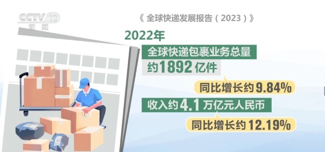 《全球快递发展报告(2023)》指出,2022年,全球快递包裹业务总量约1892亿件,同比增长约9.84%;收入约4.1万亿元人民币,同比增长约12.19%。人均包裹量约24件,地区发展不平衡的情况突出。