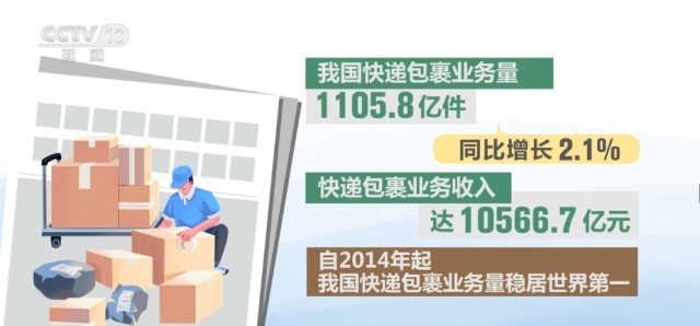 其中,我国快递包裹业务量为1105.8亿件,同比增长2.1%,快递包裹业务收入达10566.7亿元。自2014年起,我国快递包裹业务量稳居世界第一。北美地区业务量全球占比为12.2%,业务收入占比达到38.9%。欧洲业务量和业务收入规模低于亚太和北美,中东、拉美和非洲地区规模相对较小。