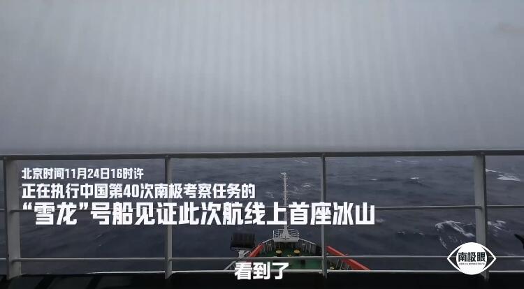 据悉,北京时间11月24日下午,行船至南纬57度33分时,此次航线上的首座冰山已经出现。预计25日中午时段,“雪龙”号将驶入密集冰区。
