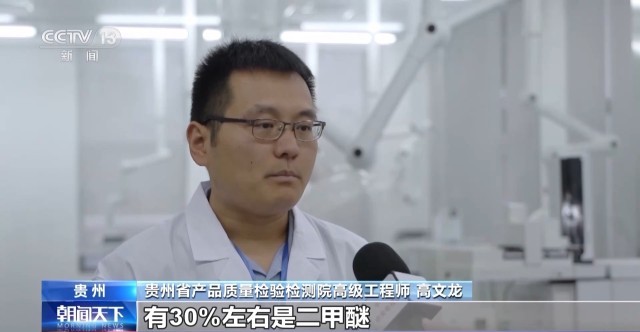 贵州省产品质量检验检测院高级工程师 高文龙:检测下来的话,它的主要成分有30%左右是二甲醚,因为这个是液化石油气产品,有30%的二甲醚掺混进去之后会对橡胶产生腐蚀,存在一定的安全风险。