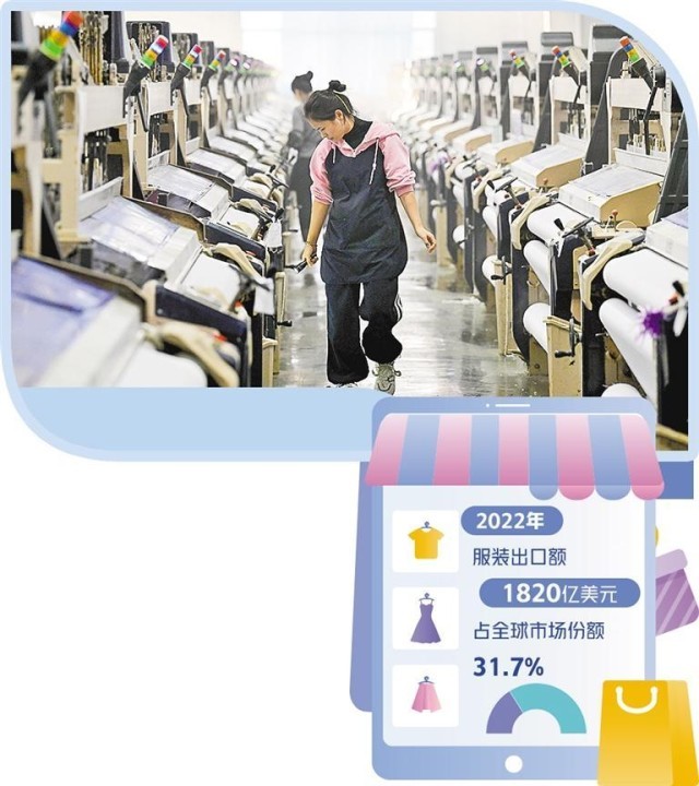 虎门的发展,是我国服装产业发展的一个缩影。如今,中国服装已深度融入世界发展。孙瑞哲表示,我国年产服装700多亿件,占全球一半以上。内销市场规模4.5万亿元,占全球销量40%;2022年,服装出口额1820亿美元,占全球市场份额31.7%。依托配套和创新能力、规模与体系优势,中国制造已成为全球服装品质和数量的保障。