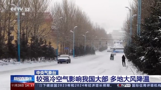 中央气象台预计,今天(28日)到12月1日,一股较强冷空气将自北向南影响我国大部地区,气温普遍下降4~6摄氏度,西北、黄淮等地的降温幅度将达到8~10摄氏度。