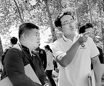 刘焕军(右二)组织专家在三江示范区实地考察。资料图片
