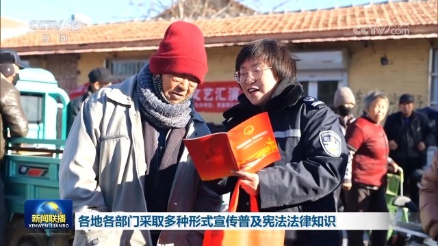 央视网消息(新闻联播):今天(12月4日)是第十个国家宪法日,各地各部门通过多种形式宣传普及宪法法律知识,使宪法法律融入日常生活、走进人民群众,让法治意识深入人心。