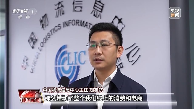 中国物流信息中心主任 刘宇航:在新业态的带动下,互联网直播平台以及电子商务的这种蓬勃的发展,那么带动了整个我们线上的消费和电商保持了一个高速增长。