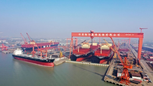 12月5日拍摄的江苏扬子鑫福造船有限公司的船坞。