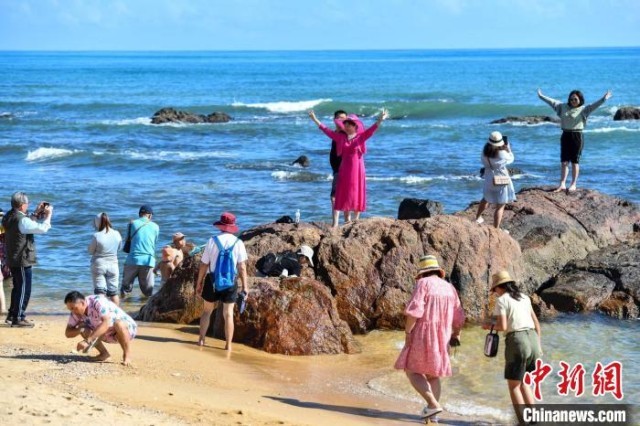 12月10日,“江山如画”网上主题宣传活动(海南)采访团来到万宁日月湾。图为万宁日月湾吸引众多市民游客前来。中新网记者骆云飞 摄