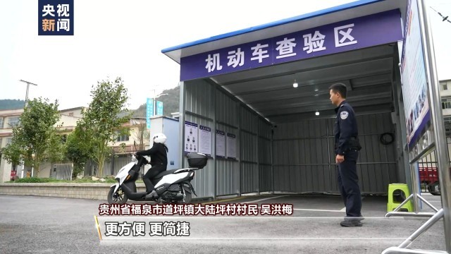 贵州省福泉市道坪镇大陆坪村村民 吴洪梅:以前我们要到马场坪车管所里面去办,有三十几公里,要一两个小时才能到那里,一天的时间才能把牌照办好。现在道坪派出所可以办理这个业务,一个小时就可以上牌了,更方便、更简捷。