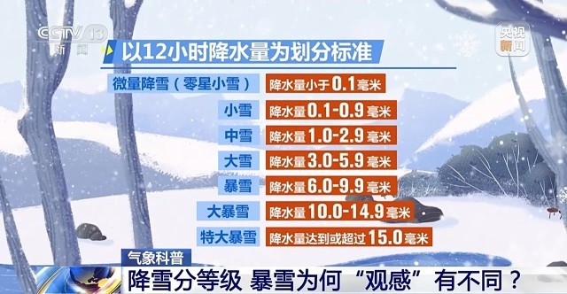 这两天局地会出现大到暴雪,那么,究竟多大的雪才是暴雪?暴雪又划分为哪些等级?为何有时对暴雪,人们的“观感”不同呢?一起来了解一下。
