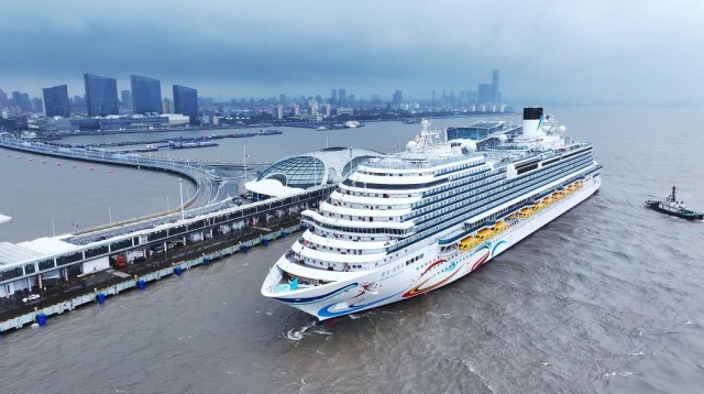 “爱达·魔都号”顺利驶抵上海吴淞口国际邮轮港。(爱达邮轮有限公司供图)