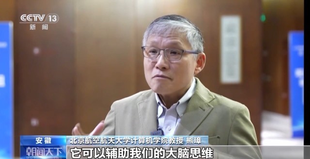 北京航空航天大学计算机学院教授 熊璋:人工智能有一个特别的、和传统的技术不一样的地方,它可以辅助我们大脑思维的活动和行为,因此在未来的教育中,人工智能对于我们的教育创新、教育高质量发展,都是非常重要的一个工具和手段。
