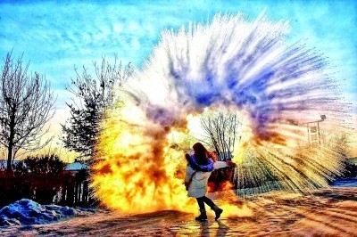 “给我多拍几张。”在大兴安岭塔河县,来自山东的自驾游客纷纷招呼伙伴为自己拍摄“泼水成冰”的影像。他们将水壶里的热水向空中泼洒,极寒下,热气腾腾的水瞬间化为白色冰雾,在落日余晖的映衬下,显现出一道道优美的弧线。
