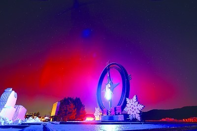 极光照耀下的北极村七星广场。漠河市委宣传部供图