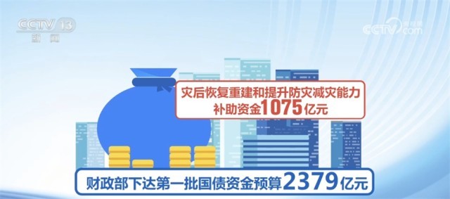 央视网消息:今年四季度中央财政将增发1万亿元国债,专项用于支持灾后恢复重建和提升防灾减灾能力。不久前,由国家发展改革委、财政部会同相关部门建立的增发国债项目实施工作机制已经确定第一批项目清单。记者从财政部最新了解到,第一批国债资金预算2379亿元已经下达。