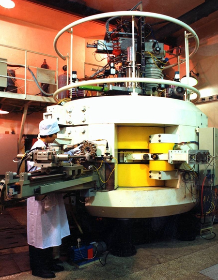1976年年初,我国从苏联引进的固定能量回旋加速器发生故障,无法运转。樊明武和原子能研究院的同事们便决定趁这个机会把这台加速器从固定能量改为可变能量,便于获取不同能量下的核试验数据。