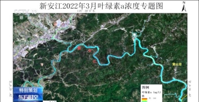 再来看叶绿素a浓度图对比,十几年间由较高值的红色变成了蓝色,降低了36.35%。叶绿素a是反映水体富营养化重要指标,浓度越低,表示水体富营养化程度也越低。如今,新安江跨省界断面水质连续11年达到补偿考核要求,千岛湖水质同步改善。