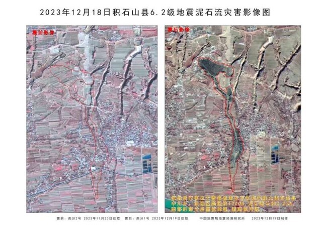 甘肃积石山县灾区地震前后影像图。图片提供方:国家航天局对地观测与数据中心、中国地震局地震预测研究所