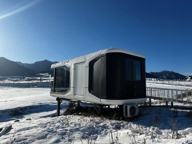 12月19日,中青报·中青网记者跟随“追着雪花看新疆”主题采访活动来到位于乌鲁木齐县水西沟镇闸滩村的野路子营地·趣野文创园。这座占地面积近40亩的营地,是今年8月当地新增的一处集露营地、特色集装箱、网红奶茶、太空舱住宿和集市花车等于一体的文创园,位于丝绸之路正北面,能近观丝绸之路、也能眺望南山美景。