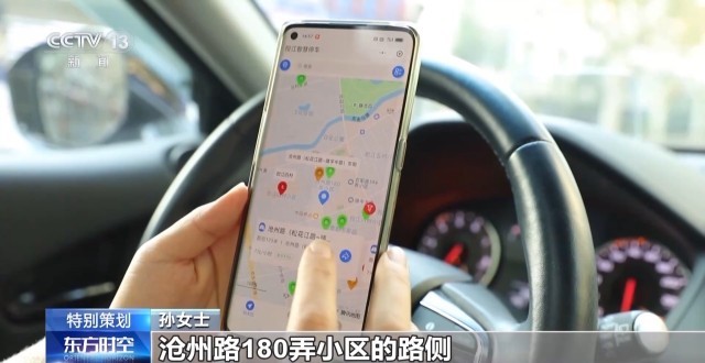 “智慧停车”小程序不仅显示了车位情况和资费,还调用了第三方导航软件,帮助司机准确抵达停车点。按照导航,孙女士来到沧州路180弄小区旁边的路侧。现场实际的空车位情况,跟小程序显示的完全一致。