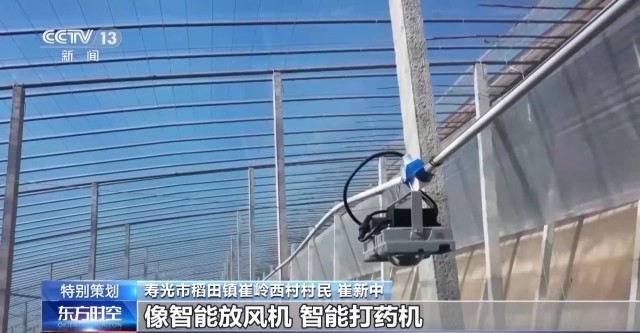 寿光市稻田镇崔岭西村村民 崔新中:这个棚里安了很多智慧设备,像智能放风机、智能打药机、水肥一体化、智能卷帘机、智能补光灯。这些智能设备,通过手机都能操控,省时省力。