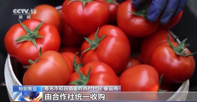 寿光市稻田镇崔岭西村村民 崔官亮:这个大棚管理,完全按照标准化要求种植,所以西红柿品质好、产量高。一亩地产量能达到2万斤左右,现在每天采摘1500斤左右。采摘下来的西红柿,由合作社统一收购,直接出口国外。