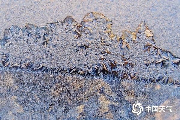 △12月21日,北京天寒地冻,玻璃窗上出现千姿百态的“冰窗花”。