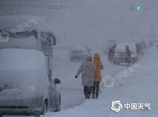 △12月21日,山东威海降雪持续,道路积雪结冰现象严重。