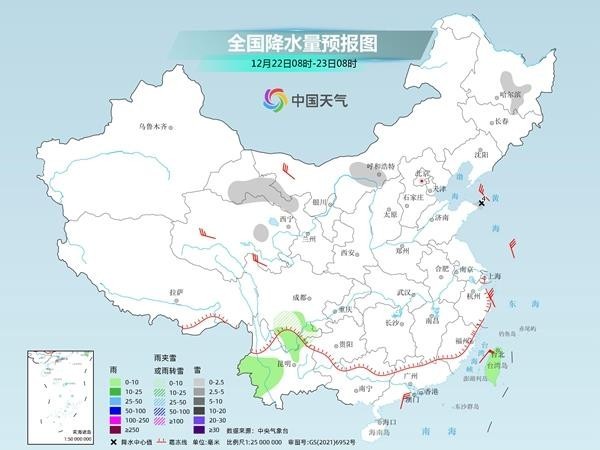 明天,新疆南疆西南部山区、西藏西部、甘肃河西、四川南部、贵州西北部、云南东北部等地部分地区有小雪或雨夹雪。