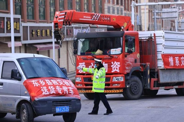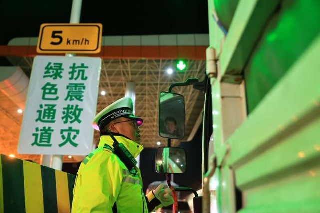 公安机关确保救灾物资绿色通道安全顺畅。张铮/摄