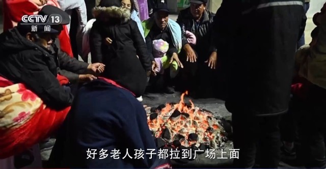 积石山县刘集乡 受灾群众:好多老人孩子都拉到广场上面,生起篝火,柴火都是农户自己家里边抱过来的,一人拿一点,烧了一晚上。