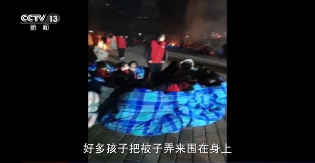 积石中学校长 董洪海:实际上最低是零下15℃,1800名学生疏散到了操场上,好多孩子把被子弄来围在身上。