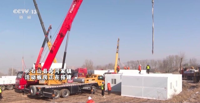 活动板房作为下一阶段的转移安置房,正在紧锣密鼓地搭建着,在积石山县大河家镇,已经有受灾群众从帐篷搬入活动板房中。