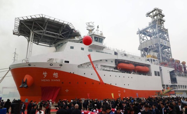 ↑12月18日,我国自主设计建造的首艘大洋钻探船正式命名为“梦想”号。这是在广州拍摄的命名仪式现场。新华社记者 黄国保 摄