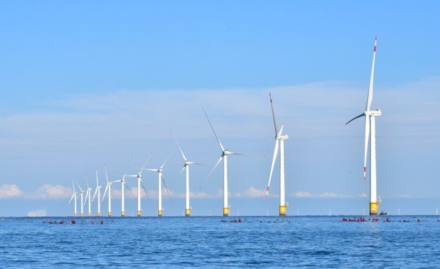 ↑9月13日拍摄的辽宁大连庄河海上风电项目。近年来,东北三省围绕资源优势加速布局清洁能源。由一座座陆地、海上风场,光伏和生物质电站提供的绿色电能,正在东北能源供给中扮演重要角色。新华社记者 杨青 摄