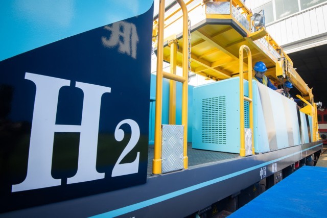 ↑7月18日拍摄的由中铁武汉电气化局研制的氢能源地铁施工作业车。据了解,该作业车采用氢燃料电池与锂电池混合动力系统提供牵引动力,运行时没有废气和噪音,排放物为水,能应用于地铁、隧道、矿山等相对密闭的环境。新华社记者 肖艺九 摄