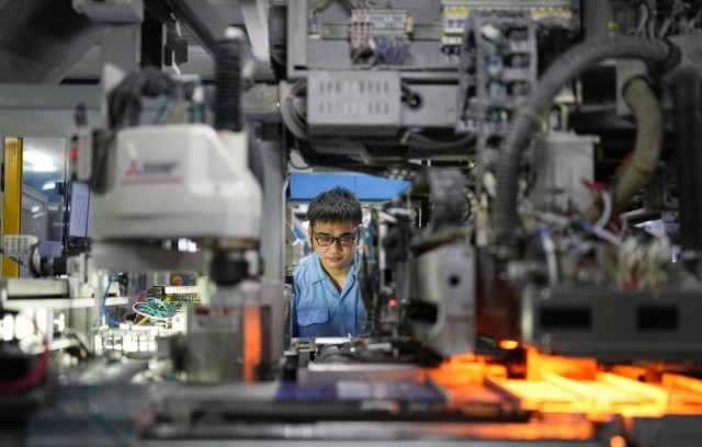 ↑8月9日,在浙江省台州市黄岩区省级专精特新“小巨人”企业浙江公元新能源科技股份有限公司,工作人员操作全自动焊接机生产太阳能电池片。新华社记者 翁忻旸 摄