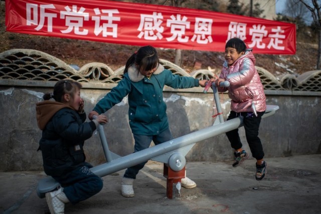 12月23日,在积石山县柳沟乡尕集村五社安置点,小朋友正在玩耍。人民网记者 翁奇羽摄