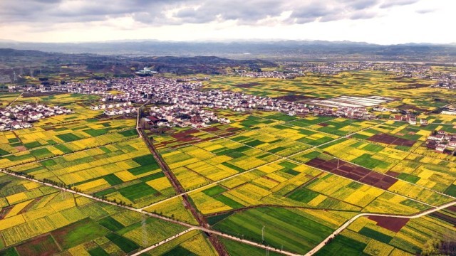 汉中市洋县洋州街道何家村的油菜花海(无人机照片,3月16日摄)。新华社发(邹竞一 摄)