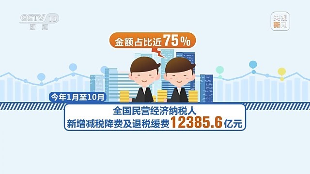 我国延续、优化的这批阶段性税费优惠政策中,民营经济纳税人是主要受益对象。国家税务总局数据显示,今年1月至10月,全国民营经济纳税人新增减税降费及退税缓费12385.6亿元,金额占比近75%。