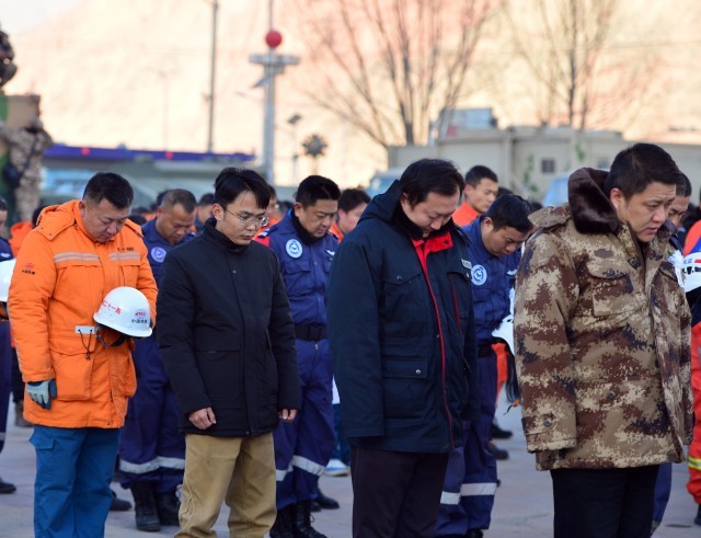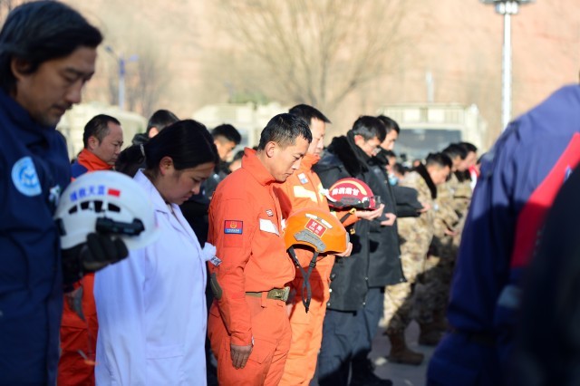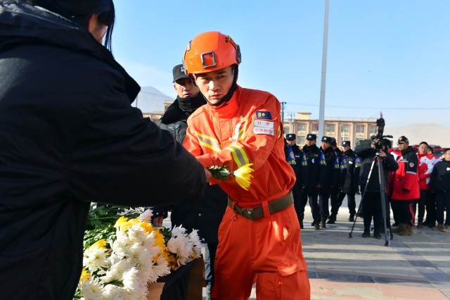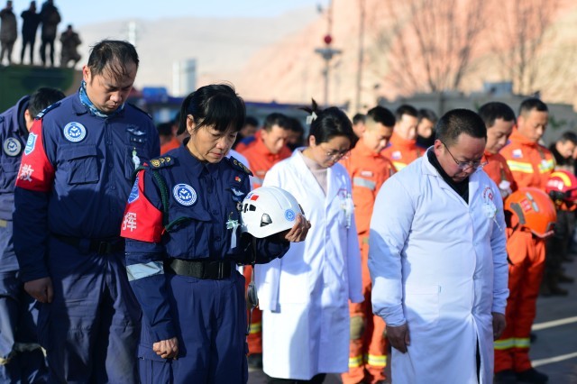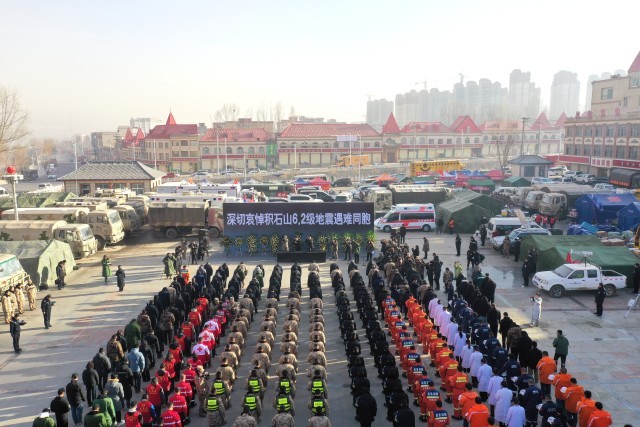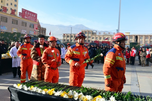 12月25日上午10:00,深切悼念积石山6.2级地震遇难同胞默哀仪式举行,主仪式在甘肃省积石山县大河家镇文化广场举行,另外3个受灾较重乡镇石塬镇秦阴村、柳沟乡尕集村一社、刘集乡肖家村同步举行悼念活动。