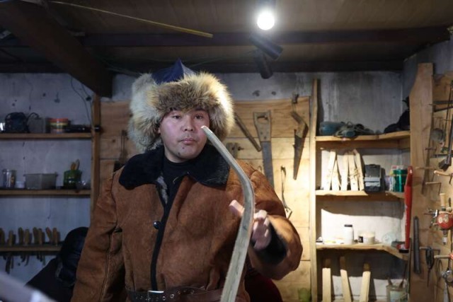 刚开始学时,这个大个子的哈萨克族小伙儿会不小心把裁好的桦木板掰断,或是切割板材时尺寸出现问题,但靠着耐心和坚持,他现在制作的毛皮滑雪板品质也跟父亲做得一样好。