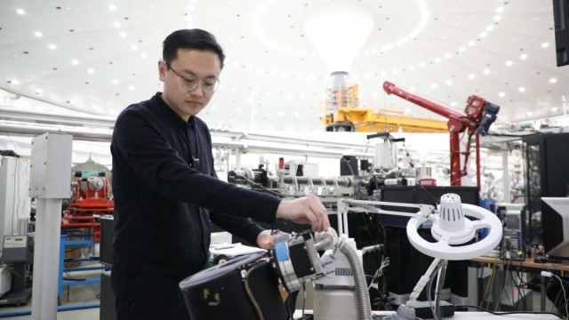 2023年2月24日,科研人员朱健和在中国科学技术大学国家同步辐射实验室的软X射线成像线站准备实验样品。新华社发