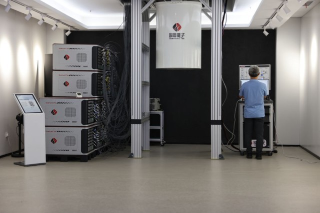 2023年7月21日,国盾量子首席科学家彭承志在位于安徽合肥的科大国盾量子技术有限公司展厅操作“祖冲之二号”同款超导量子计算机。新华社记者 金立旺 摄